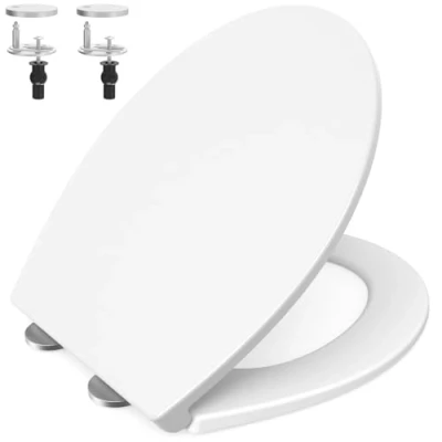 [Soft-Close & Silent]Thanks to the built-in soft-close mechanism, the toilet seat closes smoothly and quietly, eliminating loud slamming noises and avoiding disturbing family members during nighttime rest. The soft-close function also protects the surface of the toilet seat and helps extend its service life. [Sturdy & Durable · High Load Capacity]Made of high-quality Duroplast material, the toilet seat is solid and not easy to break, with a load capacity of up to 200 kg. The material is stable, durable, and resistant to deformation, making it suitable for daily use. [Universal Fit]Designed specifically for O-shaped toilets, with an adjustable mounting hole distance ranging from 5.5 to 19.5 cm, compatible with most common toilet brands. Please measure your toilet before purchasing. [Hygienic & Easy to Clean]The smooth surface helps prevent dirt buildup and can be easily cleaned with common cleaning products. The one-button quick-release design allows the toilet seat to be easily removed for thorough cleaning of the toilet. [Easy Installation]Includes complete mounting accessories and a clear instruction manual for quick and effortless installation. The sturdy hinge structure ensures a stable fit without wobbling. Its simple and elegant design blends easily with various bathroom styles, combining aesthetics and practicality, making it an ideal choice for modern bathrooms., Manufacturer: Dongguanshi Chunxu Trade Co., Ltd.