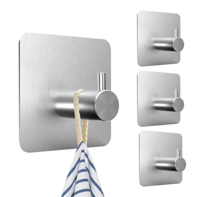 High-quality stainless steel: SURFOU bathroom hooks are made of high-quality stainless steel, are waterproof and rust-proof as well as easy to clean. They are suitable for damp and dry environments, are scratch-resistant in everyday life and retain their shine in the long term. The package contains four high-quality hooks. Self-adhesive solution: the self-adhesive strips require no tools or screws, no drill. Simply peel off the protective layer and stick the hooks to a smooth surface. To ensure the best adhesion, it is recommended to leave the tea towel holder for 24 hours before use. Strong load capacity: this strong bath hook can easily hang towels, bathrobes, hats, bags, keys, umbrellas and other everyday items. Please avoid hanging overweight, valuable or fragile items to ensure safety when using. Wide Application Suitable for smooth, hard surfaces such as tile, glass, stainless steel, marble, wood and latex paints. Use on textured wallpaper is not recommended as it could fall off or damage the wall. The SURFOU towel hangers are ideal for home, kitchens, living rooms, bedrooms, offices and caravans. Practical and modern design: the simple self adhesive holder hanger blends harmoniously into any room decoration, saves space and gives your home style, functionality and order., Weight: 0.3086471668 pounds, Manufacturer: Dongguanshi Chunxu Trade Co., Ltd