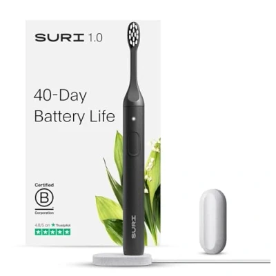 SURI Electric Toothbrush—Sustainable Toothbrushes Adults. Slim Sonic Toothbrush & Accessories. 40 Day Battery, 2 Modes. Travel Toothbrush. Ideal Christmas Gifts for Women Men