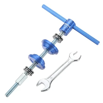 [Easy-to-grip handle] This bike headset press-in tool is made of aluminum alloy, easy to remove and carry. The fine knurled design with anodized surface has a stylish and exquisite appearance and is non-slip and easy on the hands during assembly. [Easy installation] The bicycle bearing cup press-fit tool has a double-sided flat thrust bearing, which is more effortless than a single-sided thrust bearing due to the lubricated ball design. The mountain bike headset is not easily deformed during assembly. The product is equipped with a bottom bracket key to facilitate installation. [Wide application] This pressfit bearing tool is suitable for most bicycle headset and some bicycle BB press on the market. There are several sizes on the front of the press block for the nesting of bicycle headset and the large area on the back of it is suitable for BB press. [Note] Please hold the handle with both hands and apply pressure slowly moving to complete the installation. When installing, use the wrench to hold the nut under to prevent it from turning. When installing, please always pay attention to whether the bearing is tilted and adjust it in time to avoid damage. [Serviece & Warranty] We are committed to high-quality products and customer-oriented service and provide a 1-year warranty on the headset tool bicycle. If you have any questions about the product, please contact us. We will do our best to solve the problems.