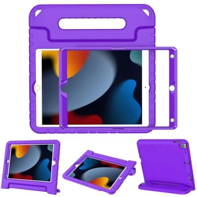 Surom Kids Case with Screen Protector for iPad 10.2 Inch 2021/2020/2019 (9th/8th/7th Generation), Shockproof Convertible Handle Stand 9th/8th/7th Generation Kids, Purple