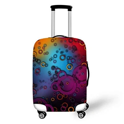 SUITCASE COVER: Made of high quality elastic Polyester + Spandex fabric, soft and firm. It fits closely to your suitcase and provides complete protection for your travel luggage FEATURES: there is zipper at the bottom, strong grip, not easy to fall off. It can help protect your valuable luggage from bruises and scratches and the product is easy to clean. Lightweight, wear resistance, durable and convenient items for outdoor. Package:1 Piece of luggage cover. It is a good gift for your families and friends on a trip. Perfect for holiday travel, carry it around the world, add fun on your journey BEAUTIFUL AND DURABLE: The protector cover can match most suitcase; The unique pattern also allows your suitcase easy to recognize. Provides a pleasant experience for your trip. Before purchase, please measure your suitcase so that you can buy the suitable one yourself. Convenient to Use: Practical, it is easy to install and uninstalled. Wear resistant and reusable. Special holes in both sides and top for handle. Can also cover the damage of the suitcase.