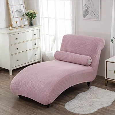 Surwin Armless Chaise Lounge Cover, Stretch Chair Covers Soft Modern Printing for Indoor Living Room Bedroom Sofa Slipcovers (1PC,pink)