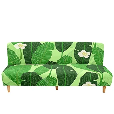 Surwin Armless Sofa Bed Cover 3D Plant Leaves Printed, Non Slip Washable Stretch Futon Slipcover Protector for 2 Seater/3 Seater Folding without Armrests (Banana Leaf,120 150cm)