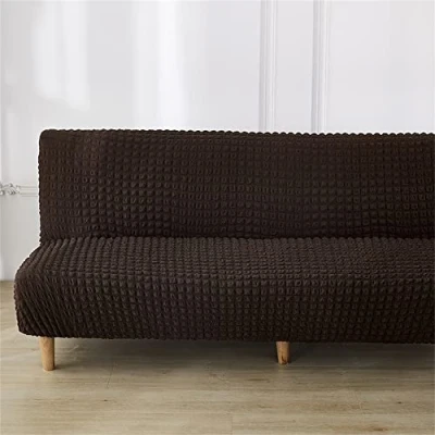 Surwin Armless Sofa Bed Cover Seersucker, Non Slip Washable Solid Colour Stretch Futon Slipcover Protector for 2 Seater/3 Seater Folding without Armrests (Black,2 Seater)