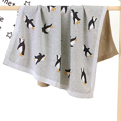 Surwin Baby Knitted Soft Blanket for Newborn, Warm Swaddle Wrap Stroller Cover Nursing Sleep Sack Stroller, Birthday Gift Kids Boys and Girls (80x100cm,Gray penguin)