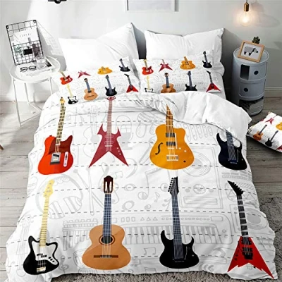 Surwin Bedding Set Microfiber 3pcs for Double Single Size, 3D Guitar Duvet Cover with Music Printing Quilt & 2 Pillowcases King Super Adult Kids (Stage,King 220x240cm)