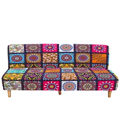 Surwin Bohemia Armless Sofa Bed Cover 3D Printed, Non Slip Washable Mandala Stretch Futon Slipcover Protector for 2 Seater/3 Seater Folding without Armrests (Patchwork,190 230cm)