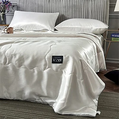 Surwin Luxury Quilted Bedspread, Silky Washed Silk Fabric Coverlets Quilt, Plain Single Double King Size Lightweight Easy Care Throws Blanket Patchwork Bed Sheet (White,200x230cm)