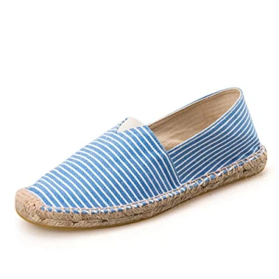 Surwin Women Ladies Espadrilles Slip On Shoes Men Low Top Canvas Couple Fashion Flat Sizes 4 9.5 (Light blue stripes,9 UK= 270mm /44CN)