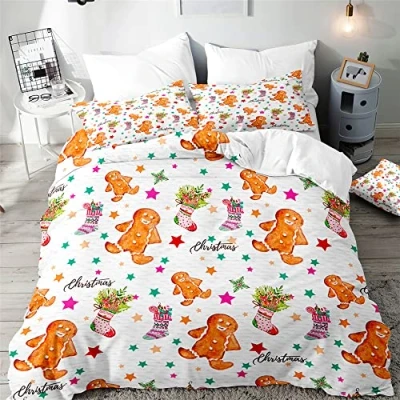 Surwin Xmas Bedding Set 3pcs for Single Double Size, Microfiber 3D Christmas Print Duvet Cover Sets include 2 Pillowcases and 1 Quilt Adult Kids (gingerbread,King 220x240cm)