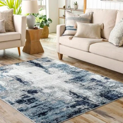 Living room rug collection featuring modern style, luxurious abstract and marble rug designs and geometric patterns in multicoloured combinations of Sky Blue, Ink Blue, Charcoal, White, Light Slate, Black colours Strong and durable soft area rugs in a range of small, medium, large, round rugs and runner rug sizes, machine woven in 100% Polyester, with a virtually non-shedding 9 mm thick pile; soft and luxurious, whilst hard wearing, marble rugs Designed to withstand everyday wear; this living room rug is child approved and pet friendly. Oeko-Tex standard 100 certified; free of any harmful substances and hypoallergenic Easy care cleaning; for long lasting lounge rugs vacuum regularly and blot up small floor rug stains with a mild detergent or carpet cleaner Perfect area rugs for living room and other high traffic rooms in your home; lounge, dining room, kitchen runner, corridor, office, bedroom, playroom and hallways