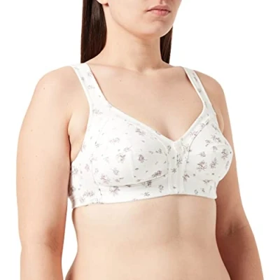Functional bra without underwire with three-part cup; with side support rods and wide, adjustable relief straps. Laminated basic fabric for an optimal hold, even in large sizes; print with stylised roses.