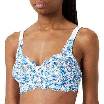 Susa Women's Latina Bra, Semi Sheer, Blue Print, 38C
