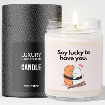 Sushi Lover Gift Luxury Soy Wax Candle Vanilla, Jasmine, Sugared Almond Makester