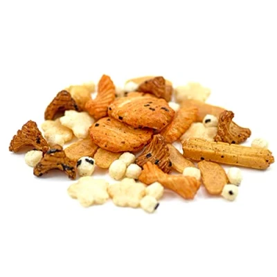 Rice cracker mix with savoury flavour. Ready to eat and take on the go. Great for movie nights, picnics or parties. High in protein. Flavoured with soy sauce and seaweed. 250g bag.