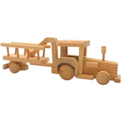 Sustainable Wooden Tractor Decorative Car Agricultural with Hanger and Grabber Arm Model 34 x 5 10 cm