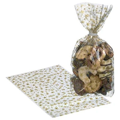 Transparent bags 18 x 30 cm Polypropylene, free from AZO dyes, printed Motif: gold stars Pack of 10 in polybag