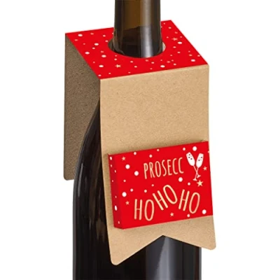 AmazonChristmas Bottle Charm with Box for Money / Voucher Cards Size: 7 x 18 x 1 cm (folded) 180 g kraft paper with foil finish Motif: Prosecc Ho ho ho Pack of 10