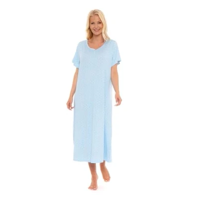 This is one of our most popular nighties and we think it's a must-have for anyone who prefers a nightdress . Many customers return to purchase a second or third colour when they enjoy their first nights sleep. The attractive charcoal polka dot design offers a classic, yet timeless look in Classic Navy, Burgundy or Forest options, Pretty Pastels and stylish florals are also a stylish addition to this range. A generous 48in/123 cm length, V-neck with 3 button fastening and sizing available up to size 30/32 offer the ultimate in comfort and convenience. Experience luxurious softness and superior comfort, guaranteed! Premium 95% Polyester, 5% Elastane Supersoft fabric SOFT JERSEY FABRIC: Made from premium, soft, and breathable jersey fabric, this nightgown provides exceptional comfort, perfect for a restful night’s sleep.Made from premium, soft, and breathable jersey fabric, this nightgown provides exceptional comfort, perfect for a restful night’s sleep. STYLISH DESIGNS: Available in a selection of attractive patterns, this nightgown ensures you look stylish, even while lounging or sleeping. SHORT SLEEVES AND V NECK: Featuring short sleeves and an elegant V-neckline with a 3-button closure for added convenience and a sophisticated touch. GENEROUS LENGTH FOR FULL COVERAGE: Measuring approximately 48 inches (123 cm) in length, this nightgown provides full coverage and added warmth, making it ideal for those who prefer longer sleepwear. GENEROUS LENGTH FOR FULL COVERAGE: Measuring approximately 48 inches (123 cm) in length, this nightgown provides full coverage and added warmth, making it ideal for those who prefer longer sleepwear.
