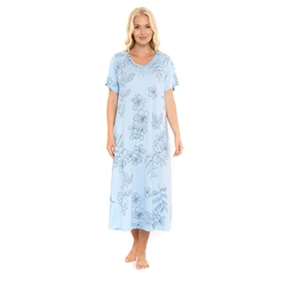 Suzy & Me Ladies Long Plus Size Luxury Soft Touch Jersey Nightshirt (BLUE FLORAL 14 16)