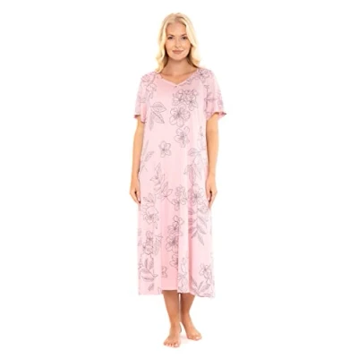 This is one of our most popular nighties and we think it's a must-have for anyone who prefers a nightdress . Many customers return to purchase a second or third colour when they enjoy their first nights sleep. The attractive charcoal polka dot design offers a classic, yet timeless look in Classic Navy, Burgundy or Forest options, Pretty Pastels and stylish florals are also a stylish addition to this range. A generous 48in/123 cm length, V-neck with 3 button fastening and sizing available up to size 30/32 offer the ultimate in comfort and convenience. Experience luxurious softness and superior comfort, guaranteed! Premium 95% Polyester, 5% Elastane Supersoft fabric SOFT JERSEY FABRIC: Made from premium, soft, and breathable jersey fabric, this nightgown provides exceptional comfort, perfect for a restful night’s sleep.Made from premium, soft, and breathable jersey fabric, this nightgown provides exceptional comfort, perfect for a restful night’s sleep. STYLISH DESIGNS: Available in a selection of attractive patterns, this nightgown ensures you look stylish, even while lounging or sleeping. SHORT SLEEVES AND V NECK: Featuring short sleeves and an elegant V-neckline with a 3-button closure for added convenience and a sophisticated touch. GENEROUS LENGTH FOR FULL COVERAGE: Measuring approximately 48 inches (123 cm) in length, this nightgown provides full coverage and added warmth, making it ideal for those who prefer longer sleepwear. GENEROUS LENGTH FOR FULL COVERAGE: Measuring approximately 48 inches (123 cm) in length, this nightgown provides full coverage and added warmth, making it ideal for those who prefer longer sleepwear.
