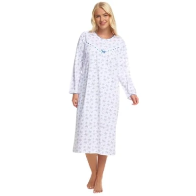 SLEEPWEAR - A perfect addition to your nightwear wardrobe! Get comfortable and warm in our cosy nightdress which comes in a choice of pretty colours: Ruby, Berry, Teal, Navy, Cerise and Plum STYLE - 4 Button yoke with matching satin ribbon bow and broderie anglaise lace, long sleeves for comfort and those that prefer a bit more warmth. LIGHTWEIGHT MATERIAL - Comfortable, cosy and warm! The lightweight fabric in 100% jersey cotton of this nightdress is simply perfect. Comes in a range of sizes from 8 up to 26 making it suitable for all shapes and sizes. PERFECT GIFT - These nightdresses are an absolute must have and are sure to put a smile on anyone's face, perfect for any occasion. Length 44ins/112cms Approx. Lovely gift.