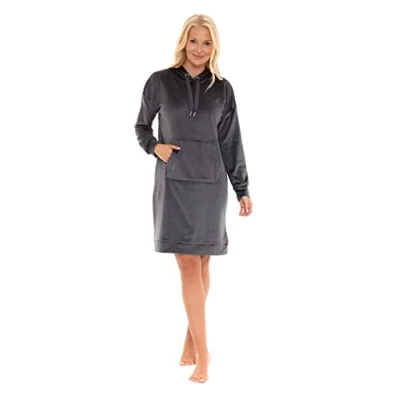 Suzy & Me Ladies Luxuriously Soft Velour Lounger Nightdress (Charcoal Ex Large)