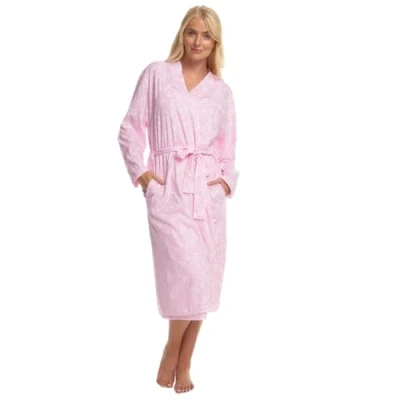 COMFORTABLE DESIGN: Soft, lightweight robe in a delicate light blue or soft pink floral print pattern with long sleeves and mid-length cut ADJUSTABLE FIT: Self-tie belt closure ensures customisable comfort and a perfect fit for various body types. Available in sizes from 8-26. Length approx 117cm PREMIUM MATERIAL: Crafted from soft, breathable 100% jersey cotton fabric that provides optimal comfort for lounging and daily wear PRACTICAL FEATURES: Long-sleeve design with a classic wrap style, perfect for year-round use and easy care ELEGANT DETAILS: Subtle floral pattern in white against a soothing light blue or soft pink background creates a feminine, sophisticated look