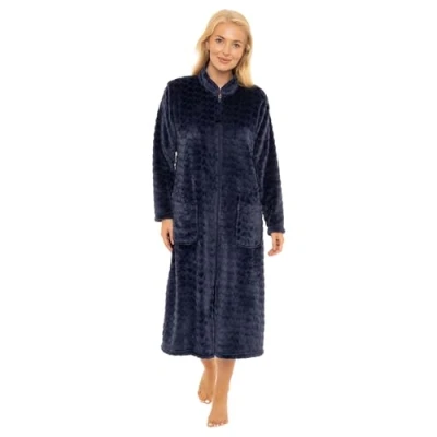 Suzy & Me Ladies Zip Front Soft Embossed Fleece Dressing Gown (8 10, NAVY)