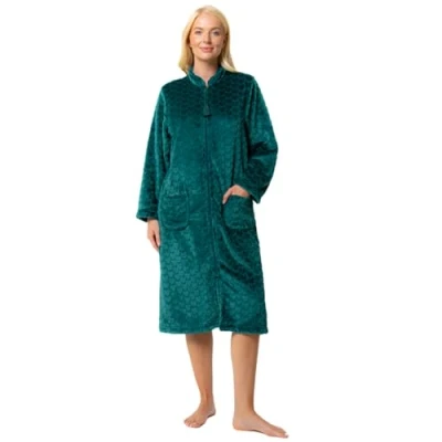 Suzy & Me Ladies Zip Front Soft Embossed Fleece Dressing Gown (UK, Numeric, 24, 26, Regular, FOREST)