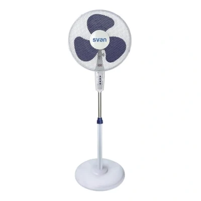 Svan Ventilador de Pie Blanco y Azul, 16", 40W, SVP401600MOBA. 3 Velocidades, Temporizador 450 min, Aspas, Mando a Distancia, Soporte Base Redonda