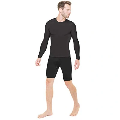 Sveltek Men's Slimming Long Sleeved T Shirt and Shorty, mens, ENS09, Black, FR : Taille Unique (Taille Fabricant S/M)