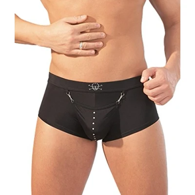 Men's black under pants Come a little closer to your dream Matt silver studs mention of a skull Small dotted print on both side of cup Comfortable and starchy to wear