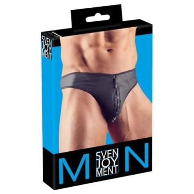 Svenjoyment Underwear Men's G String with Rhinestone Zip, Medium, Black