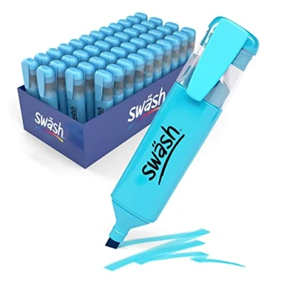 Swäsh HLP48BU Premium Highlighter Pens for Schools and Students Wedge Tip Neon Blue (48 Pack of Markers)
