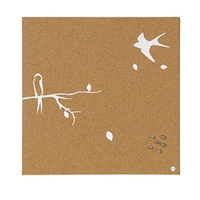 40 x 40 square note board with white swallows motif Perfect for attaching notes or writing messages The square shape is ideal for combining the individual boards with several boards of the same shape. The cork is 100% recyclable and is not damaged by the push pins The box contents include 6 push pins and a wall hanger