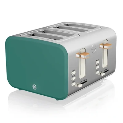 In summary, the Swan Nordic Pine Green 4 Slice Toaster is the perfect addition to any contemporary kitchen. Its blend of functionality, safety, and elegant design makes it not only an essential appliance but also a stylish element of your home decor, bringing a touch of Scandinavian serenity to your breakfast routine.