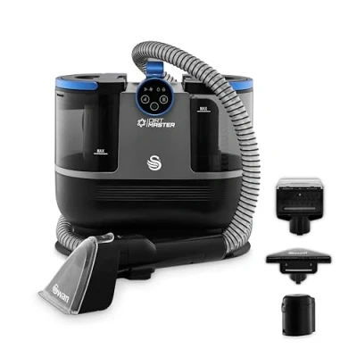ALL-IN-ONE ADVANCED HOT WATER/STEAM CLEANING: The Swan Dirtmaster Pro Spot Cleaner is your all-purpose cleaner. Advanced Steam and Hot Water functions deeply penetrate your surfaces to break down and remove even the toughest stains. Enjoy a spotless home whatever your surface or fabric SPACE-SAVING, FLEXIBLE DESIGN: This carpet and upholstery spot cleaner neatly stores away in your cupboard. The 1.8m hose and 6m power cord offer extended reach for tackling stairs and upholstery without switching plug sockets, meaning efficient, uninterrupted cleaning LARGE DUAL TANK TECHNOLOGY: This steam spot cleaner includes a 950ml dirty water tank and 1600ml clean water tank. The two separate tanks give you a hassle-free way to vacuum up all stains, dirt, and debris without constantly refilling. Perfect for longer cleaning sessions MULTIPLE ACCESSORIES INCLUDED: Achieve the ultimate spotless home thanks to the included accessories. You get a Standard Brush for everyday cleaning, Wide Brush for faster cleaning of larger areas and Self-Cleaning Tool to flush out dirt and debris 2 YEAR GUARANTEE: Trusted quality with a standard 1 year guarantee and optional 1 year extension, subject to product registration, Weight: 9.259415004 Pounds, Manufacturer: Swan