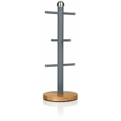 General description Inspired by Scandinavian design, the Swan Nordic mug tree keeps mugs and cups close at hand while ensuring your kitchen surfaces remain clean and tidy. Technical specifications Material: Steel and Bamboo Color: Slate Grey Base: Non-slip Bamboo Size: One Size