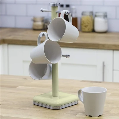 Electrical WorldMade from durable stainless steel and displaying up to 6 cups, this stylish mug tree keeps your countertops clean and tidy whilst also adding convenience. Its sturdy construction offers added durability whilst its chrome-plated branch stoppers add a touch of style into your kitchen. The mug tree comes complete with a round, chrome-finish base with a soft underliner, which adds stability whilst also protecting your kitchen surfaces. Requiring a simple wipe clean, for easy maintenance, and available in a variety of colours, this 6 Cup Mug Tree makes for both a stylish and practical addition to your home.Product Specification6 cup capacitySturdy heavy base for stabilityColour coated iron base and poleStainless steel mug hangers with Chrome stoppersFinished with Chrome plated top and base surroundsChoices of colour to compliment your kitchenItem size: H41.8 x W15 x D15cmColour: GreenStandard Warranty: 2Technical Specification:Colour: Green Product Type: Mug TreeDimensions: Length: 150mm x Height: 410mmWarranty: 2 Years