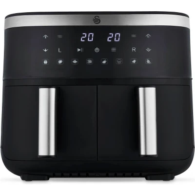 Swan SD10518BLK Dual Basket Digital Air Fryer with Cyclone Technology, 8 Pre Set Cooking Options, Adjustable Temperature, 7.6L, 2850W, Black