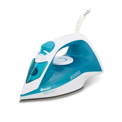 Swan SI12052AQ Steam Iron with Ceramic Soleplate, Pro Technology, Anti Calc, Drip, Adjustable Temperature Dial, 2200W, White and Aqua