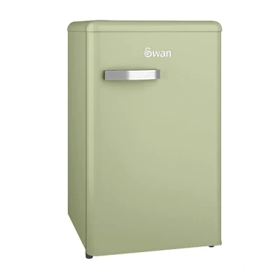 Swan SR11035GNE Retro Under Counter Fridge with 77L Capacity, 13L Freezer 1 Glass Shelf, 3 Door Shelves, Salad Drawer, E Energy Rated, Green [Energy Class E]