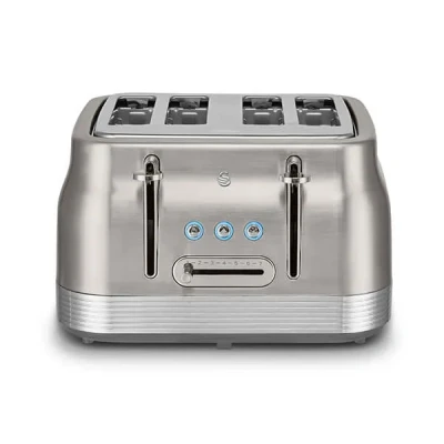Swan ST19029SS Retro 4 Slice Toaster with 7 Browning Levels, Removable Crumb Trays, Defrost, Reheat and Cancel Functions, Hidden Cord Storage, Non Slip Feet, 1860W, Stainless Steel