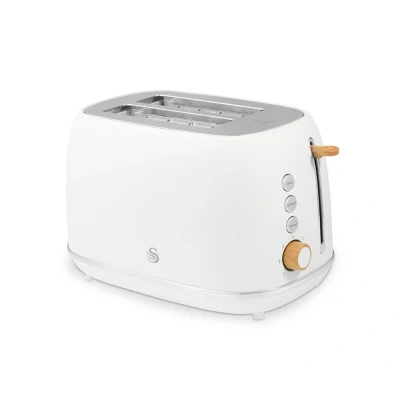 Swan ST19030WHT Fjord 2 Slice Toaster with 7 Browning Levels, Defrost/Reheat/Cancel, 800W, White & Wooden Accents