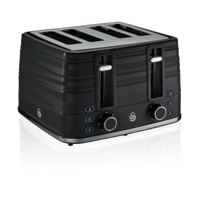 Swan ST31054BN 4 Slice Symphony Toaster, Black, Defrost, Cancel and Reheat Functions, Independent Browning Controls