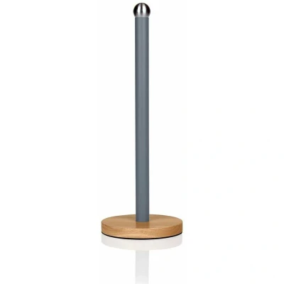 Swan SWKA17511GRYN Nordic Scandi Towel Pole/Kitchen Roll holder with Non slip Wooden Base, Slate grey, Steel, Holds 1 Paper