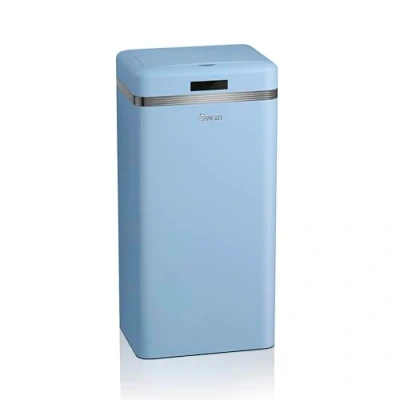 Swan SWKA4500BLN Retro Kitchen Bin with Infrared Technology, Square, 45 Litre, Blue