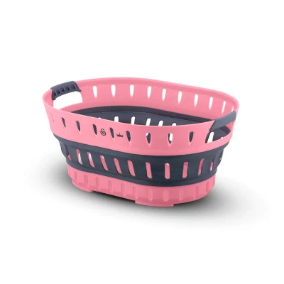 Swan x Lynsey SWLC9002QOCN Oval Collapsible Laundry Basket with Soft Grip Handles, Anti Slip Feet, Easily Collapsible, 60 Litre, Pink and Grey